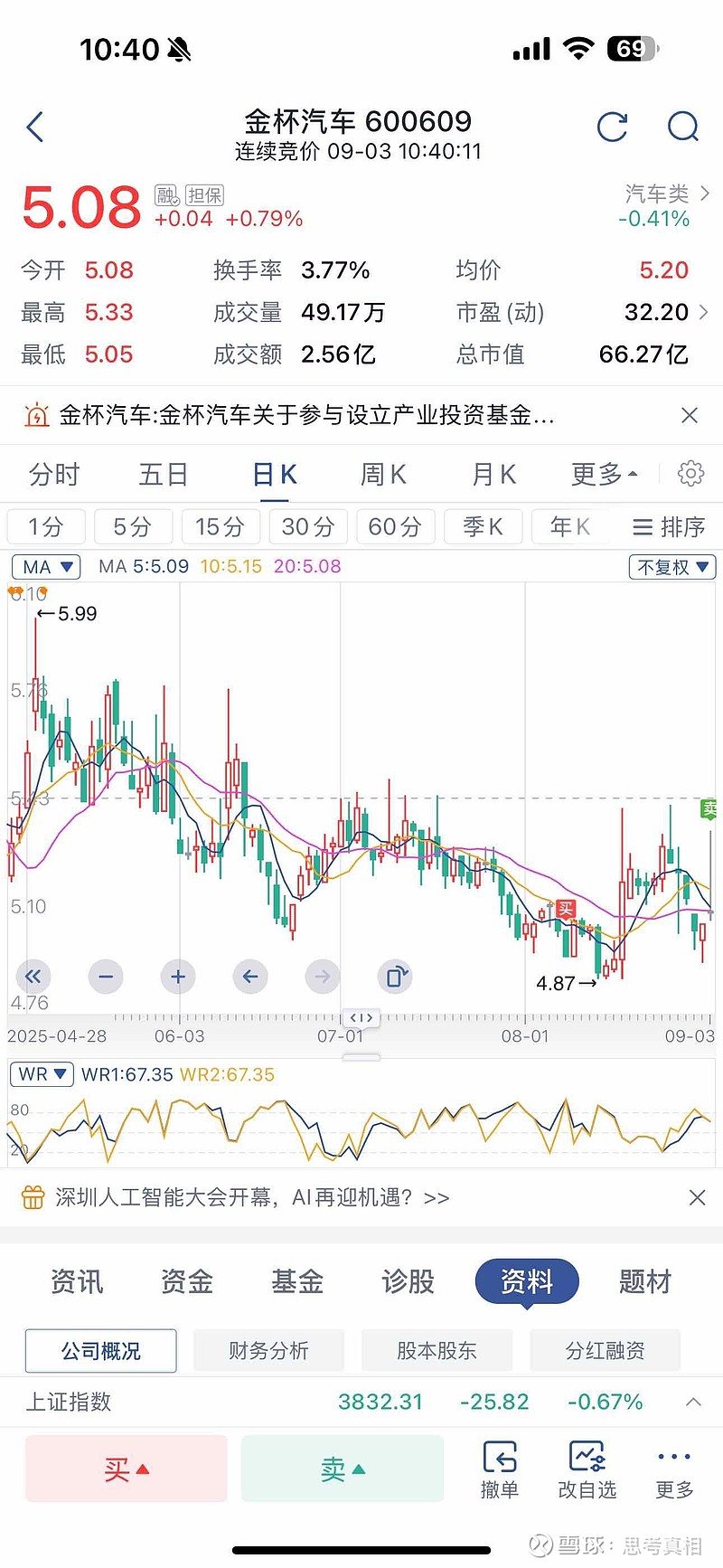 自此,金杯汽车的短线操作暂告一段落,虽然没有卖在最高位,但是也小有盈利。持有或关注这个票票的小伙伴可能会有疑问为什么不拿久一点?首先这几天大盘比较拉跨,导致承接不强,主力基于这背景下操作更谨慎,俗称更能磨。叠加上中报不怎样的票票对我来说确实拿不安心,毕竟我不是一个长线玩家。至于没有分红这些我是不考虑的,在本金面前谈分红就是在养猪。