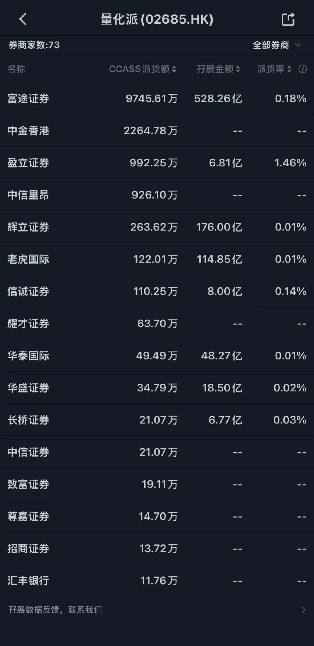 上市后第二天披露的首日CCASS派货情况愈发清晰,主力筹码在富途证券席位,富途和辉立为传统散户大阵营,主力隐藏于此事半功倍,如有操盘计划,合理的预期是散户首日大撤退,通过场外自己吸货做量。
