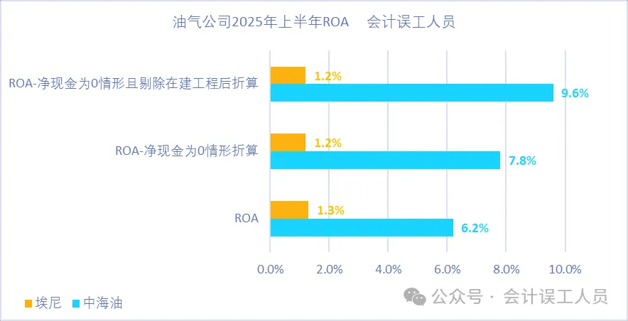 ROA也是类似逻辑,2025H1的ROA,中海油6.2%,埃尼1.3%,中海油的资产效率是同行埃尼的N倍,