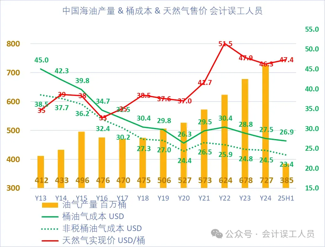 背景:中海油在2013年千亿收购高储量但也高成本加拿大油砂成了业绩拖油瓶好几年(近年改造后桶成本下降到了27美元左右),2020年后中海油逐步消除历史包袱后成本惯性震荡下降。