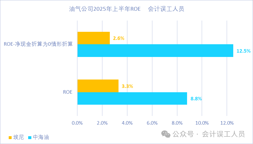 2025H1的ROE, 中海油8.8% VS 埃尼3.3%,