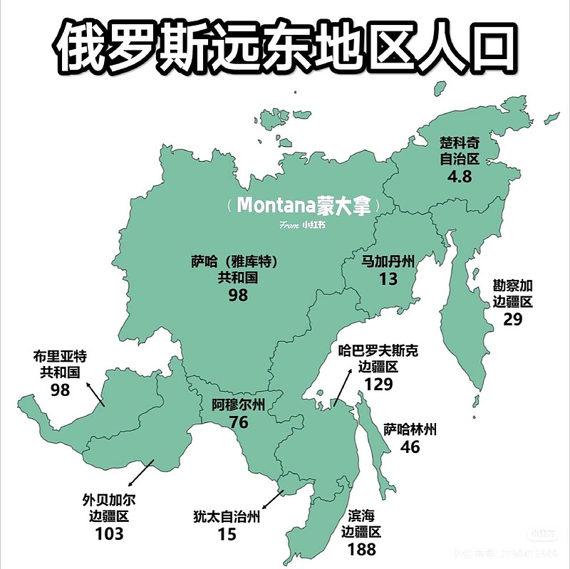 俄罗斯远东地区面积辽阔621万平方。粮食播种总面积为210万公顷(黑龙江播种面积1475.4万公顷),粮食产量约为300万吨(黑龙江8001.72万吨)主要种大豆。大豆单产1500公斤/公顷(黑龙江2400公斤/公顷)阿穆尔州(2023年产量约180万吨)和滨海边疆区(2023年产量约84万吨)是核心产区地是够烂的,黑龙江粮食产量是他的26倍,假设在中国手上,投入几万亿搞水利工程,粮食产量翻十倍不是不可能。不过几万亿直接和他买粮食更合算。