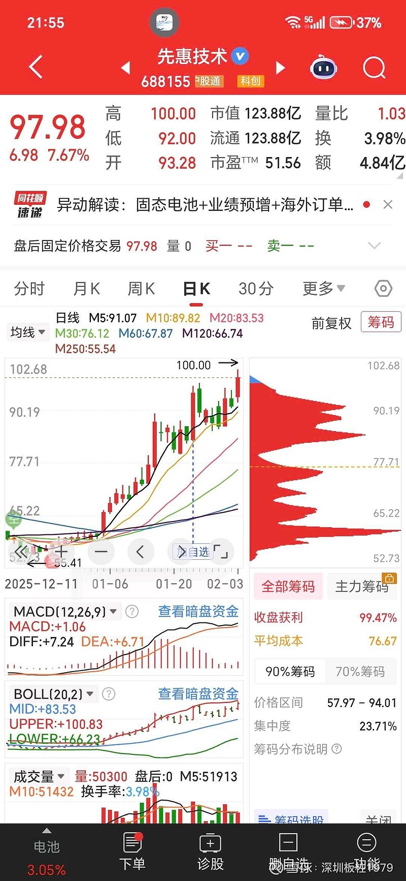从筹码分布、换手率、K线突破趋势等技术面分析,结合固态电池概念的景气度,