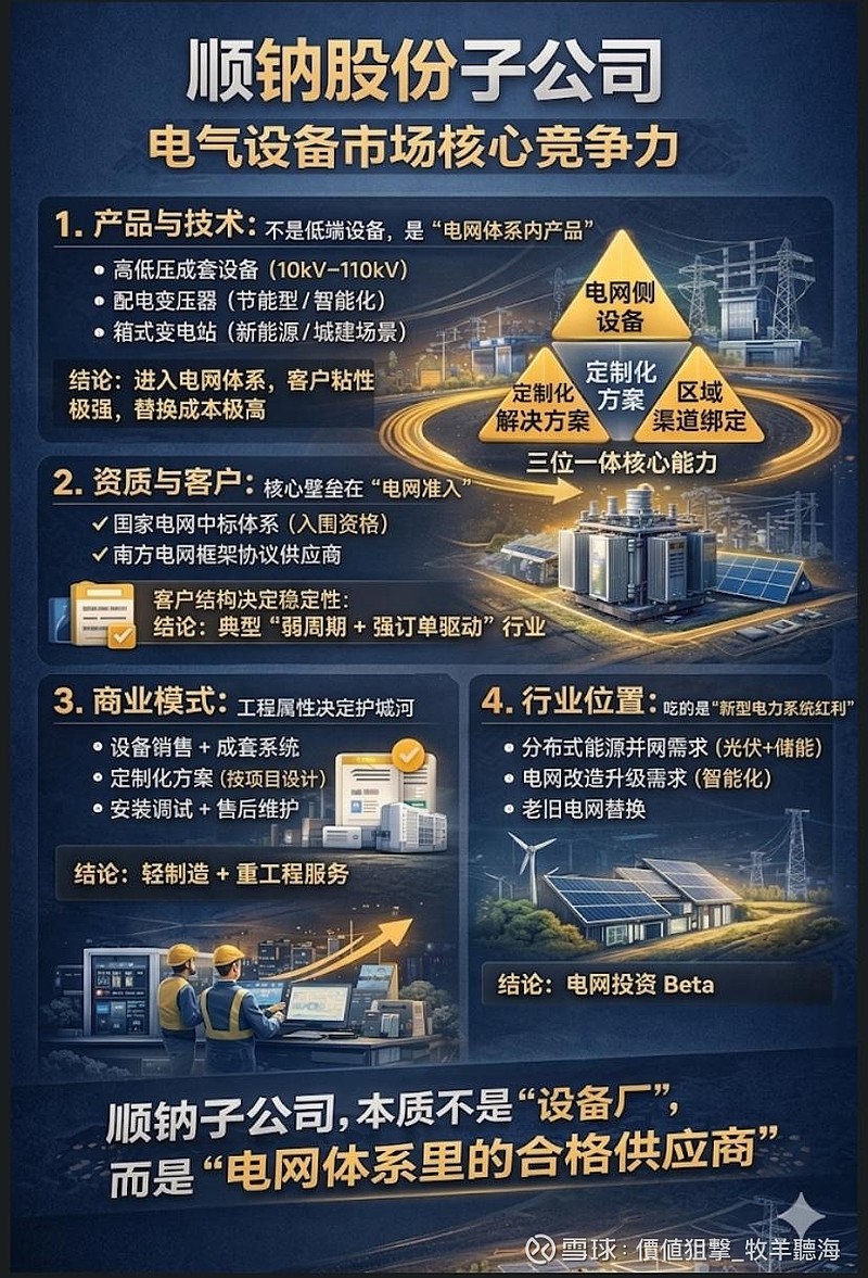 顺特电气设备有限公司是顺钠股份彻底转型成功的关键载体,已从传统家电剥离后完全聚焦高端电力装备。凭借施耐德合资的技术+品牌赋能,以及AI算力+核电+新能源三大高确定性赛道,基本面呈现订单足、毛利升、现金健康、产能释放期特征,是电力设备细分领域兼具防御性和成长性的优质资产。