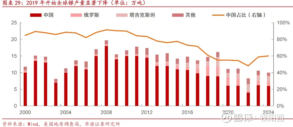 (2)目前中国仍占全球产量的40%+,此外主要供应国是俄罗斯和塔吉克斯坦