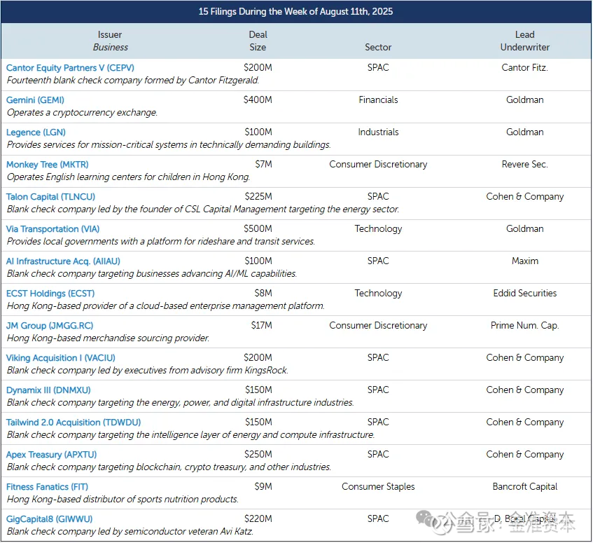 上周,一些主要发行人也加入了上市渠道:加密货币交易所 Gemini ( GEMI )、运输科技公司 Via Transportation ( VIA ) 和系统服务提供商 Legence ( LGN )。