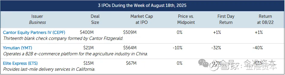 目前,本周没有安排任何IPO,不过一些小型交易可能会在最后一刻加入日程。这是自2020年以来IPO最繁忙的8月份,共有15家公司进行定价。