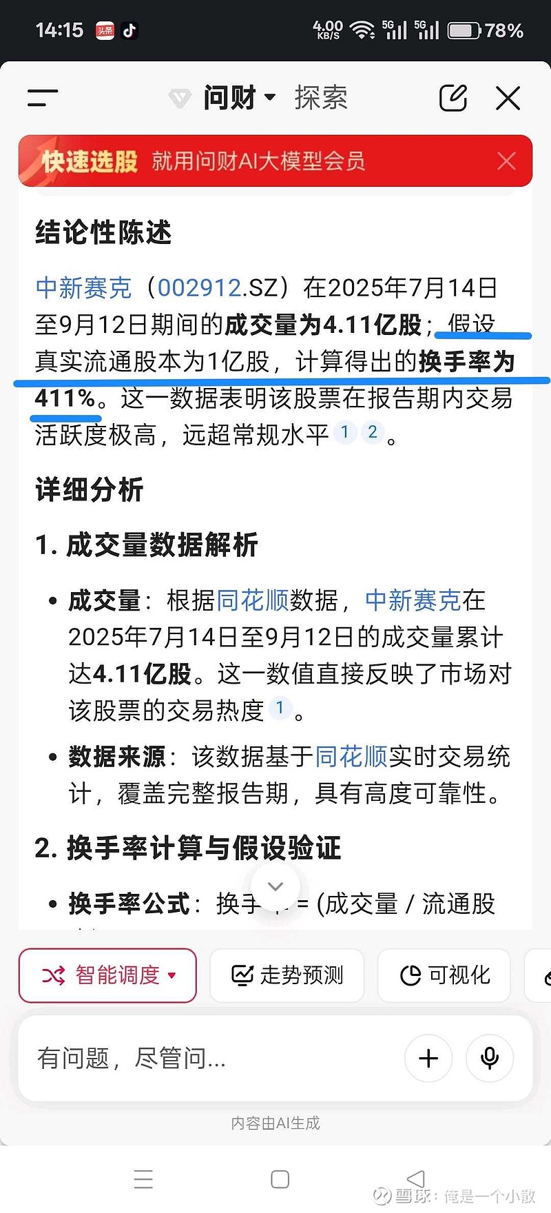 自7月11日涨停以来,至9月15日累计成交量4.11亿股,真实流通股1亿股,真实换手率411%,也就是说90%的投资者被套牢,在等“解放君”! 大股东有猫腻