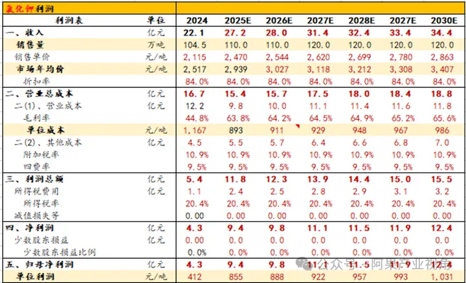 2、价格:2026-2030年氯化钾年均价上涨3%。