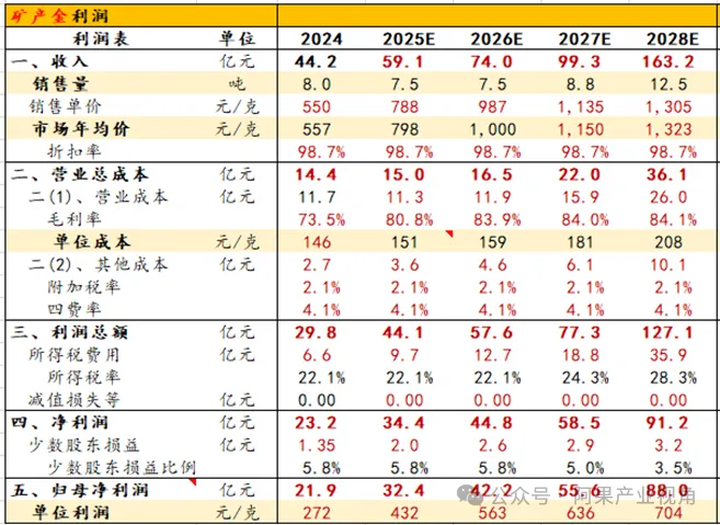 1、量:2026-2028年公司矿产金产量分别为7.5、8.8、12.5吨;矿产银产量分别为200、200、200吨。