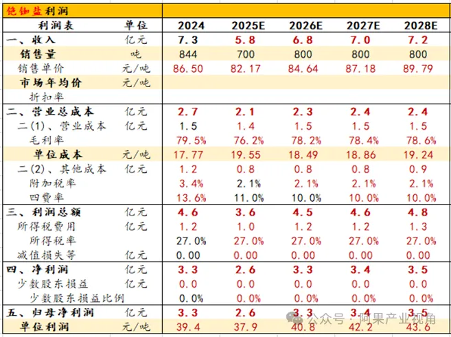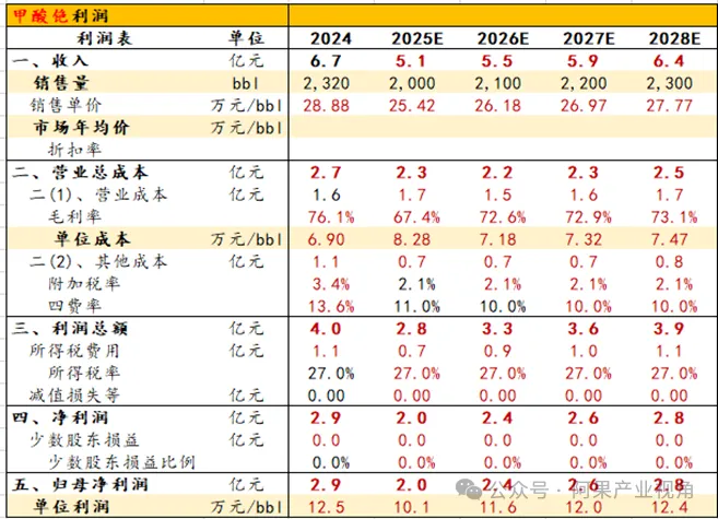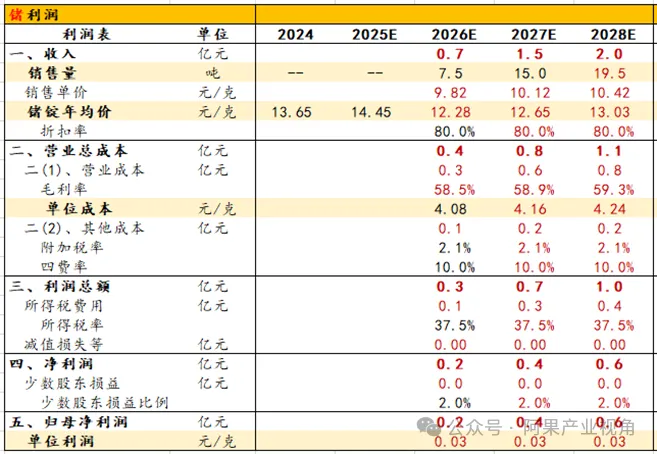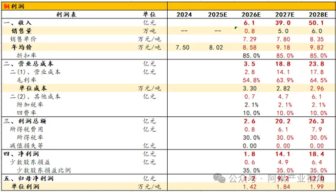 3、单位成本:2026-2028年单位成本分别为3.3、2.8、3.0万元/吨。