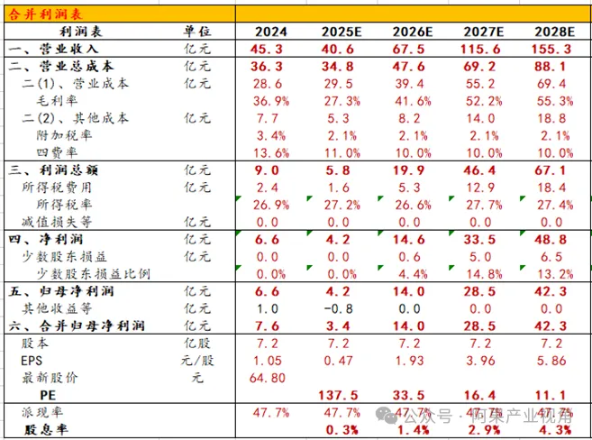 预计2025-2028年公司归母净利润分别为3.4、14.0、28.5、42.3亿元,对应估值分别为138、34、16、11倍PE。