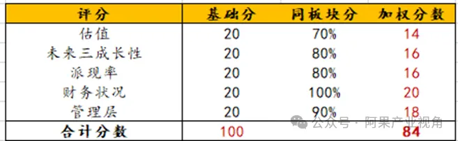 我们从五个角度分析公司投资价值,(1)估值:较低;(2)成长性:较好;(3)派现率:较高;(4)财务状况:极好;(5)管理层:公司业绩兑现度高,管理层很优秀。给到公司84分,因此整体判断公司估值较低。