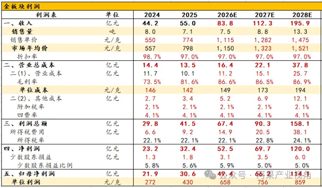 1、量:我们根据公司项目投产进度预期,预计2026-2028年公司矿产金产量分别为7.5/8.8/13.3吨,矿产银产量分别为175/185/195吨。