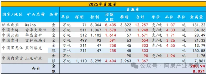 2025年公司新增黄金资源量16.6吨、白银296.6吨;其中市场较为担心储量不足的黑河洛克增储成绩显著,黑河洛克新增黄金资源量3.2吨,开发寿命有望延长;此外青海大柴旦新增黄金资源量9.4吨,Osino金矿新增黄金资源量4.0吨,玉龙矿业新增白银资源量252.2吨。截至2025年末,公司拥有黄金/白银资源量分别为281/8021吨,储量分别为149/2792吨;黄金/白银资源量较24年末分别增加4/88吨,储量分别增加12/2017吨。