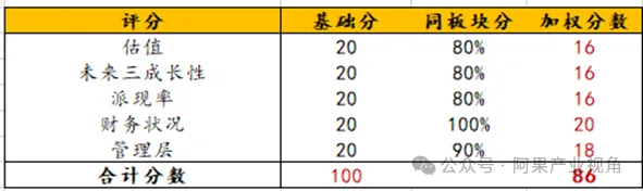 我们从五个角度分析公司投资价值,(1)估值:较低;(2)未来成长性:较好;(3)派现率:较高;(4)财务状况:极好;(5)管理层:公司业绩兑现度高,管理层很优秀。给到公司86分,因此整体判断公司估值低。