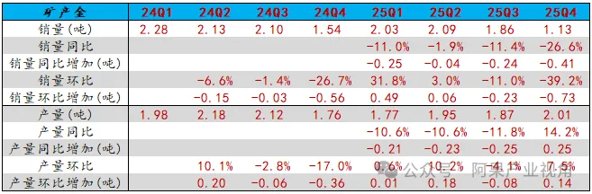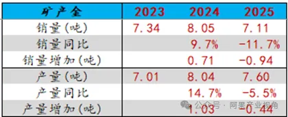 25年公司矿产金销量7.1吨,同比减少11.7%,较24年减少0.94吨;产量7.6吨,同比减少5.5%,较24年减少0.44吨。2025年公司矿产银产量164吨,同比减少16%。