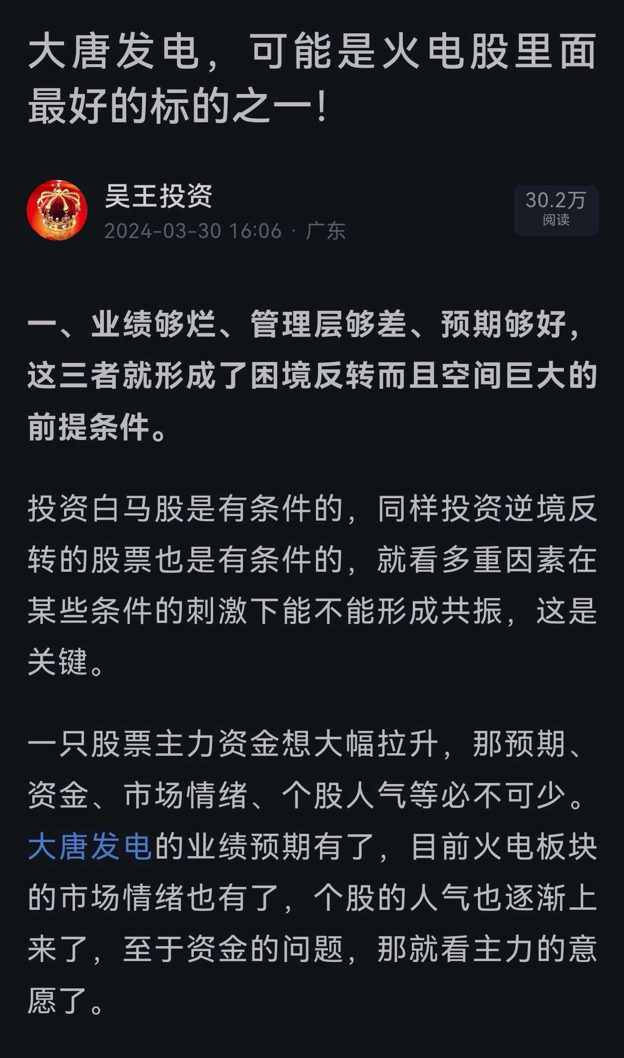 2024年3月份当大唐发电(A股)还在二块多钱的时候我极力看多唱多做多大唐发电,而当时雪球上的某大V山行啥的以及她的一帮粉丝在我文章下面尽行挖苦讽刺嘲笑(那些言论现在都被她们偷偷摸摸的删啦![]()