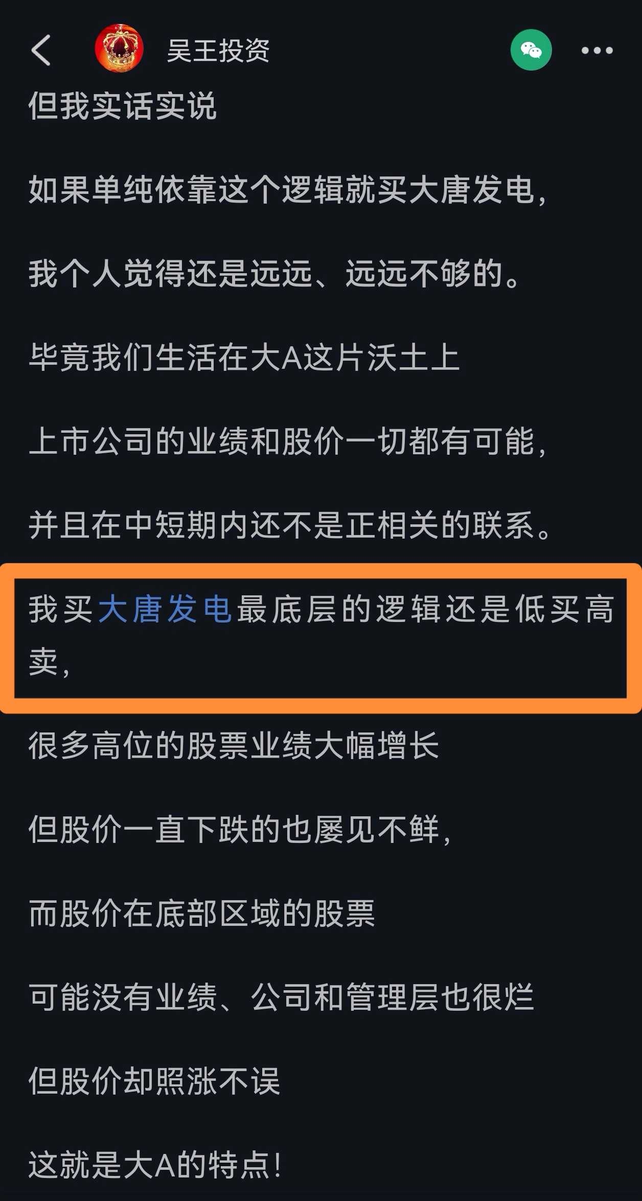 现在回头来看,她们确实应该把之前的言论全部删掉才对,主要是大唐发电的股价啪啪啪的打脸很疼啊![]()