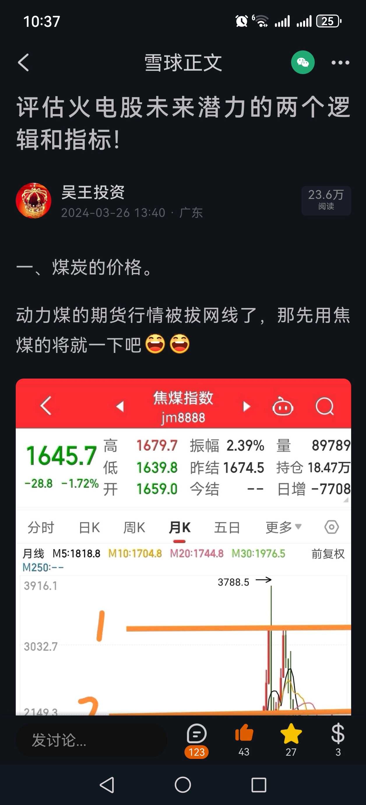 以下是2024面3月份对焦煤期货的预判,目前就是按我所划的三条橙色线在运行,一步都没有越雷池![]()