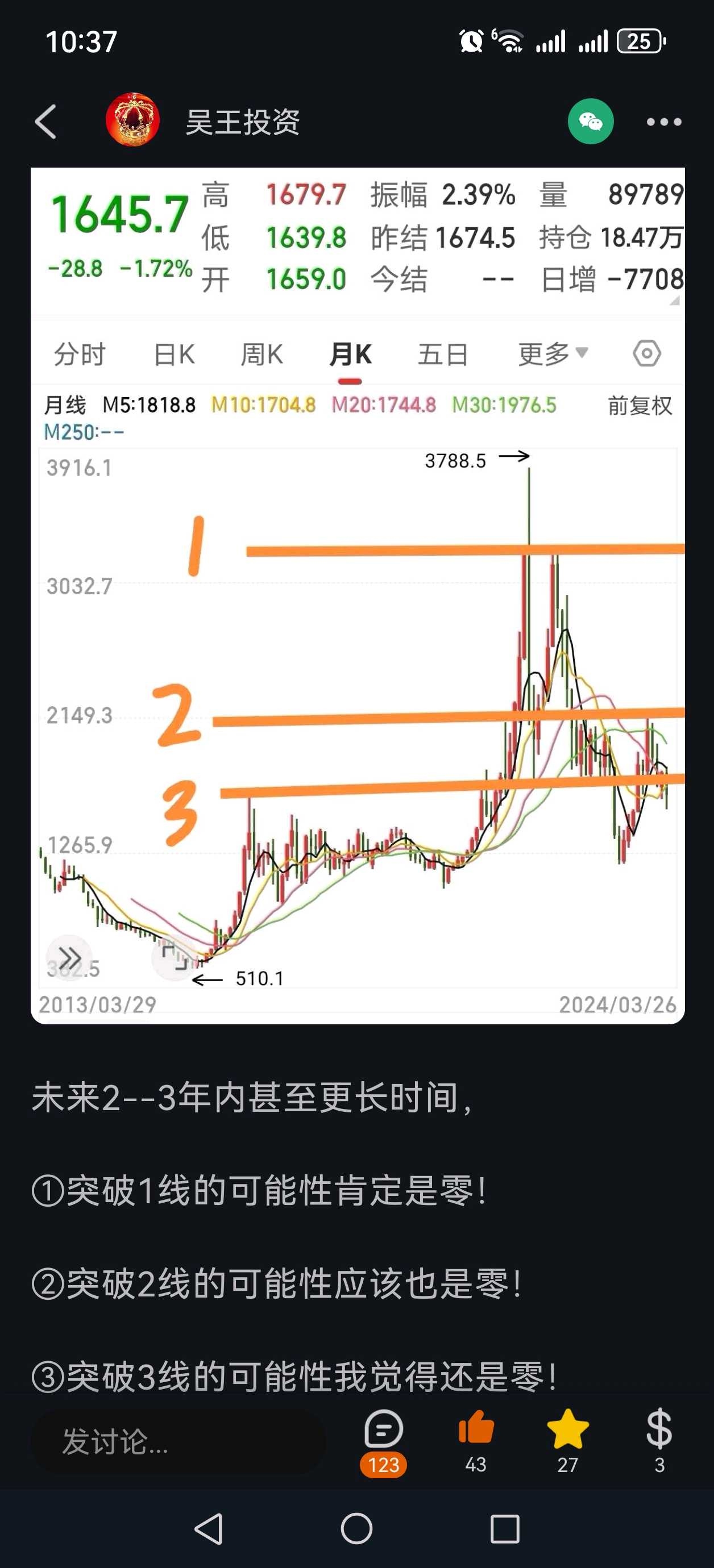 现在回头看大格局观念非常的重要,有的人没听没买,有的人听了买了但没拿住,当然也有极少数人听了买了还赚了不少钱的。