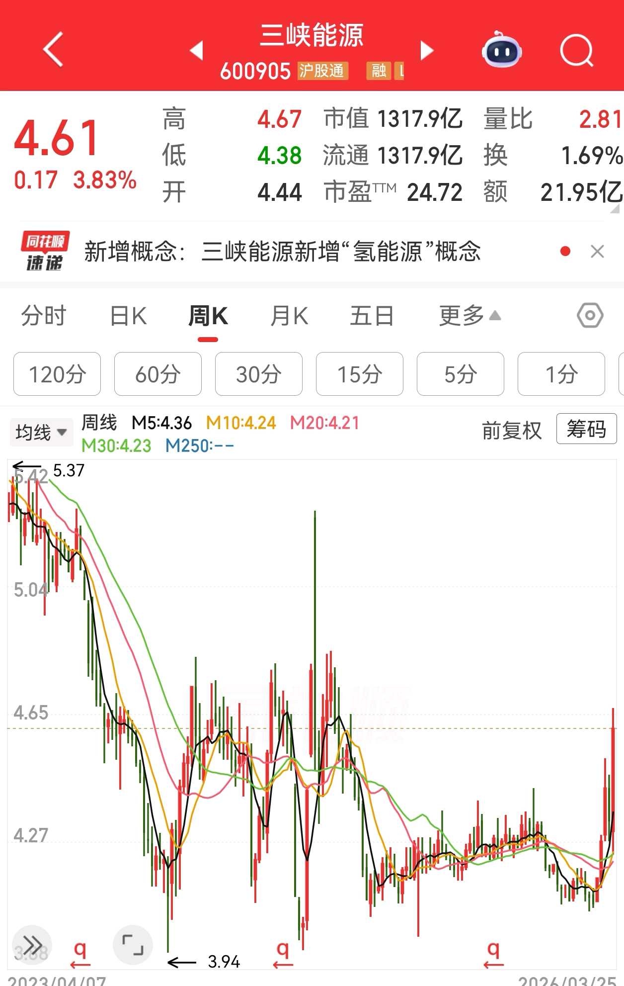 比如三峡能源,之前大盘一直涨,它也没有涨。而最近大盘大跌为什么我还一直在看多唱多和做多呢,这就是市场之外的功夫了。