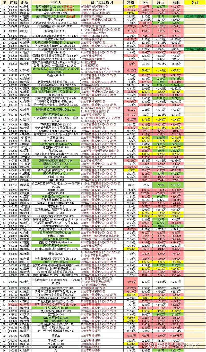 96个戴星ST营收净资产中报汇总(重整加星不在内)