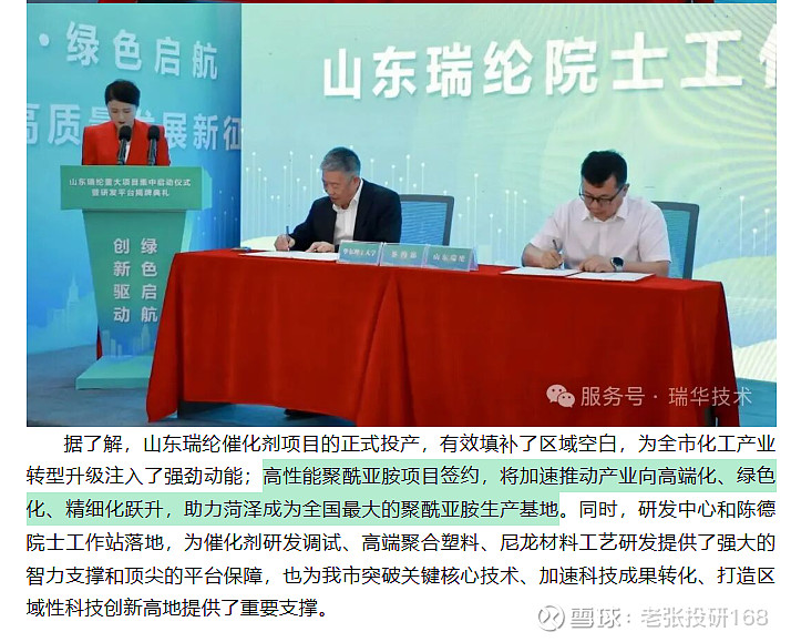 $瑞华技术(BJ920099)$ #太空光伏# pi薄膜是太空光伏的核心材料,瑞华技术旗下子公司山东瑞纶新材料 3期PI聚酰亚胺项目即将落地,高性能聚酰亚胺项目签约,将加速推动产业向高端化、绿色化、精细化跃升,助力菏泽成为全国最大的聚酰亚胺生产基地。