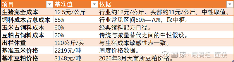 假设生猪完全成本为12.5元/公斤、饲料成本占总成本65%、其中玉米/豆粕分别占饲料成本60%/20%,则:玉米每上涨10%,生猪完全成本约上升0.49元/公斤;豆粕每上涨10%,完全成本约上升0.16元/公斤;若玉米和豆粕同时上涨30%,生猪完全成本约升至14.45元/公斤,较基准增加1.95元/公斤,涨幅15.6%。