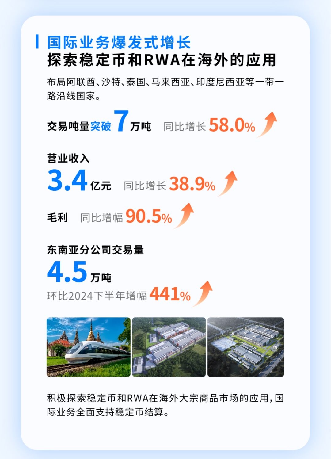 值得一提的是,作为大宗商品交易的重要应用场景,找钢国际正在积极探索稳定币和RWA在海外的应用,以提升大宗商品交易中的透明度、降低交易双方的信用成本,从而提升用户的交易体验,优化跨境贸易流程。
