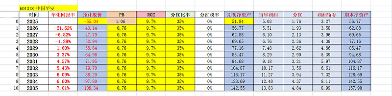 假设以现价55.04元买入中国平安,当下的每股净资产为51.84元,计算得知当下的PB为1.06倍。