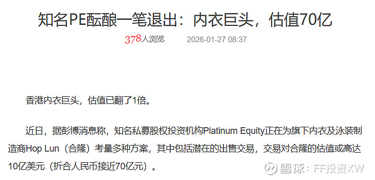 简单算个大数吧,如果看Hop Lun,ebitda 1亿美金,按照10亿美金交易(EV,企业价值),EV / ebitda约10x,这个交易倍数是蛮可观的。