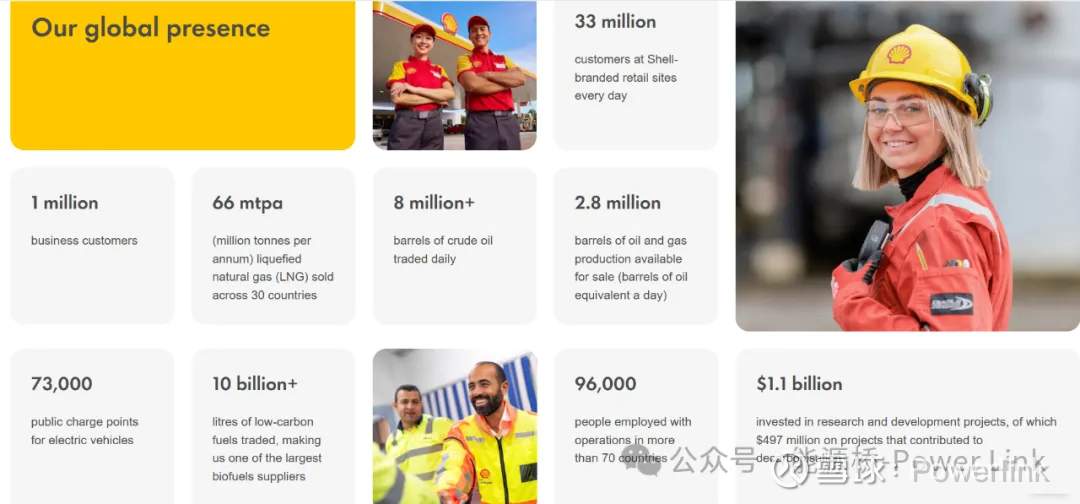 Shell (壳牌) 是全球知名的综合能源公司,业务横跨上游油气、下游化工、炼油、液化天然气、可再生能源及清洁技术。近年来,壳牌将“成为净零排放的能源公司”作为企业愿景,在新能源方向持续下注。