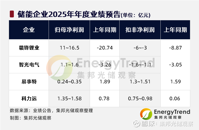 集邦光储观察获悉,赣锋锂业、智光电气、易事特、科力远发布2025年度业绩预告。4家企业2025年业绩均实现盈利,其中有扭亏为盈、大幅预增的亮眼表现,快速增长的储能业务成为影响各家企业业绩的核心因素之一。