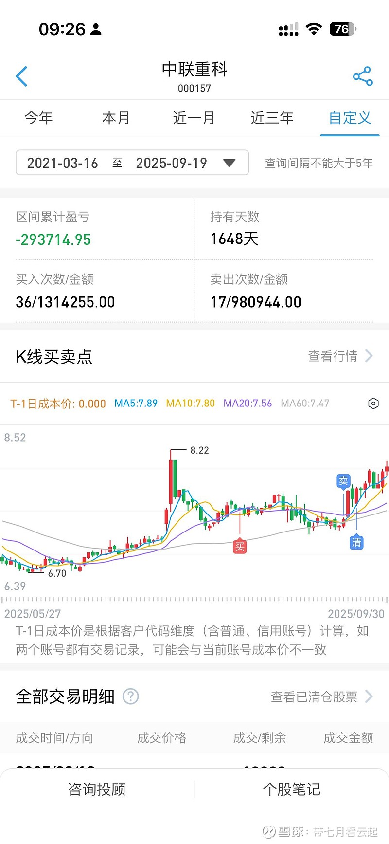 中联重科,五年里最败的一笔,亏了二十九万三,零头懒得记。不是市场狠,是我自己蠢。当初三一重工赚了票钱,沾沾自喜,时不时回味,某日鬼使神差的就把它兄弟中联重科楼了回来。没逻辑,没计划,纯靠感觉,像酒桌上拍脑袋认亲,认完才发现不是一路人。