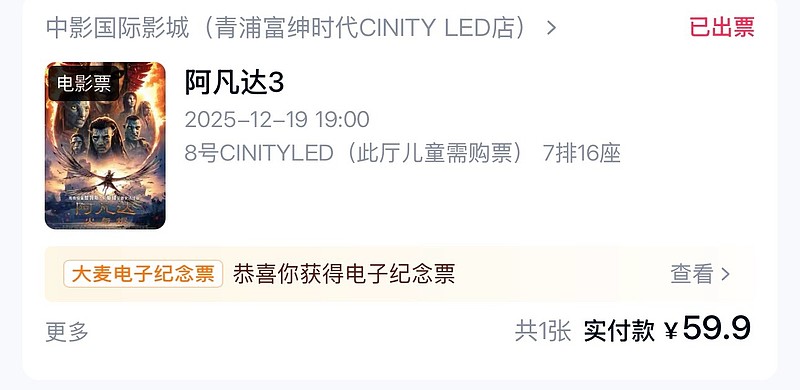 定了周五开画的阿凡达3火与烬,这种世界顶级的大片还是要体验下的。