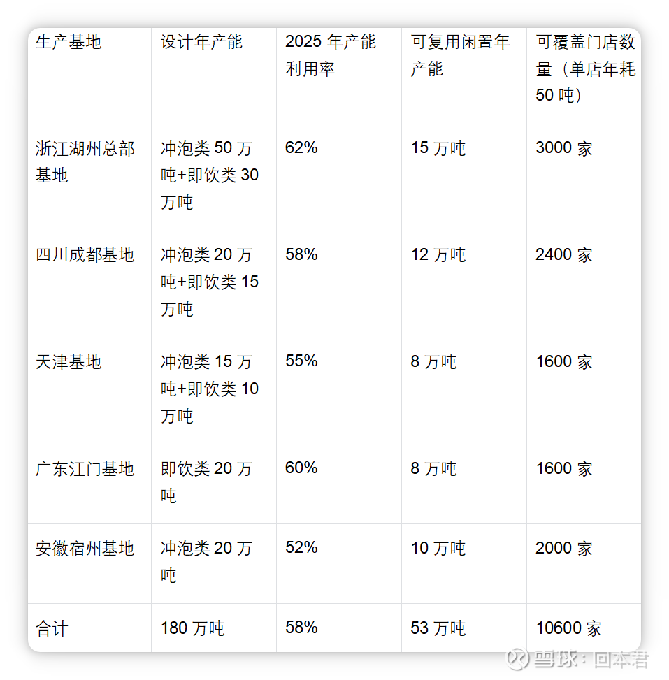奶茶店加盟与产能匹配:加盟业务处于直营试点打磨阶段,预计2026年二季度启动首批加盟试点;现有产业链、生产线与加盟原材料共用度超90%,全国五大生产基地闲置产能可覆盖超1万家门店需求,现有产能完全能满足未来3-5年的加盟扩张规划。