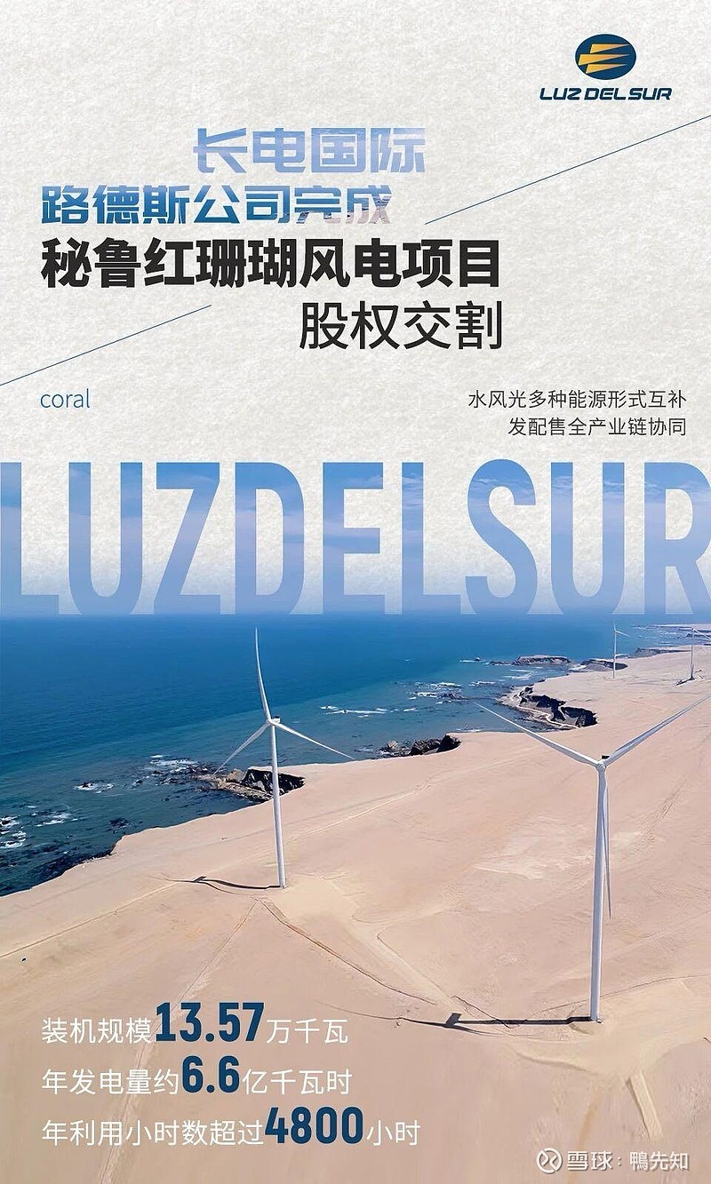 就在今天晚上,长江电力官微悄悄更新了一条动态,内容是关于长电旗下的秘鲁路德斯公司顺利完成了红珊瑚风电项目的股权交割。很多朋友可能扫一眼就划过去了,觉得不过是又发了一条普普通通的海外捷报,毕竟长电在国外的动作也不少。但我对着新闻稿里的几个核心数据琢磨了一会儿,发现事情并不简单。