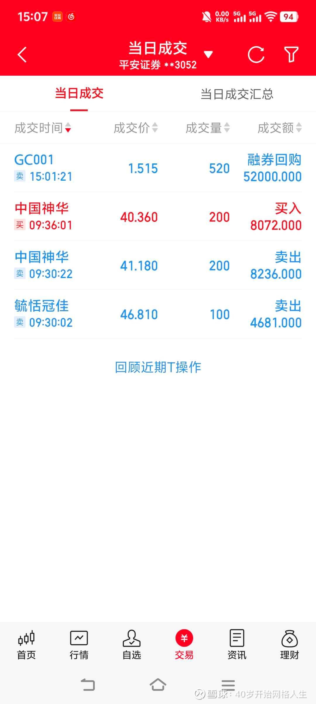 卖出中国神华和毓恬冠佳各一次。中国神华步长0.02,8236/1.02×0.02=161.4902
