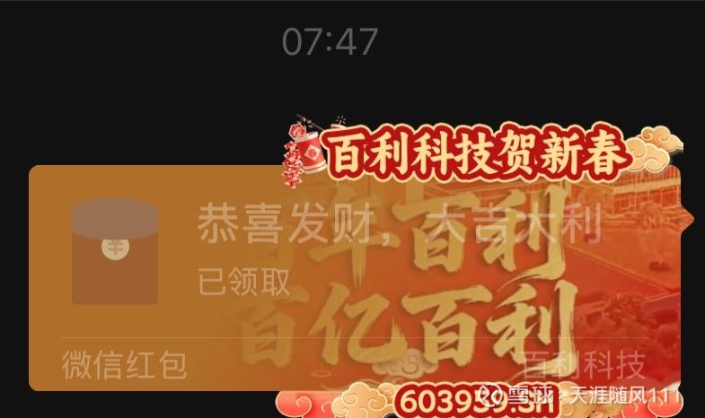 大年初一:用百利科技红包封面给家人发了抢红包游戏,以此来庆祝25、26年百利盈利最高。再次感谢百利,祝愿2026年百利能早日走上快速发展道路。预祝老师们马年大吉大利,账户长红,马到成功!$百利科技(SH603959)$