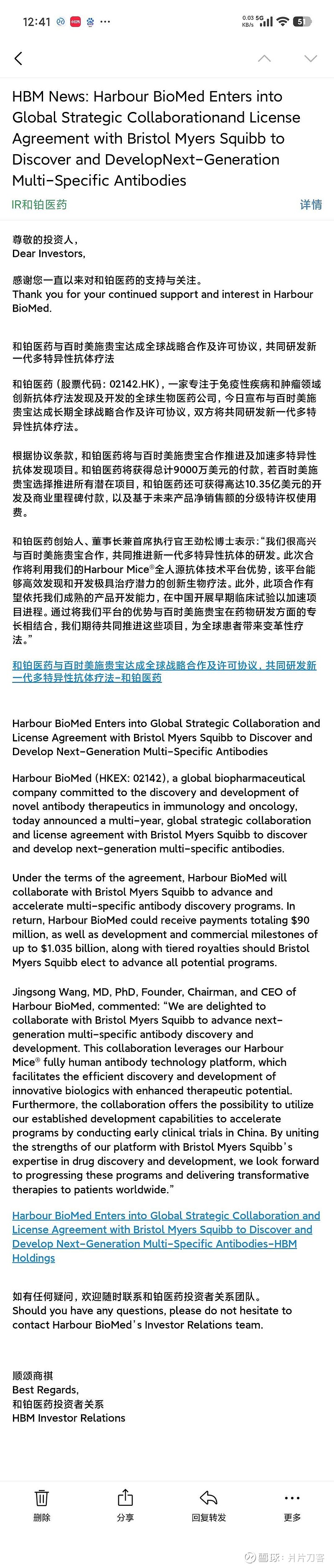 给我发的邮件。这是我投资和铂医药几年以来,第1次收到和铂医药给我发送的邮件。