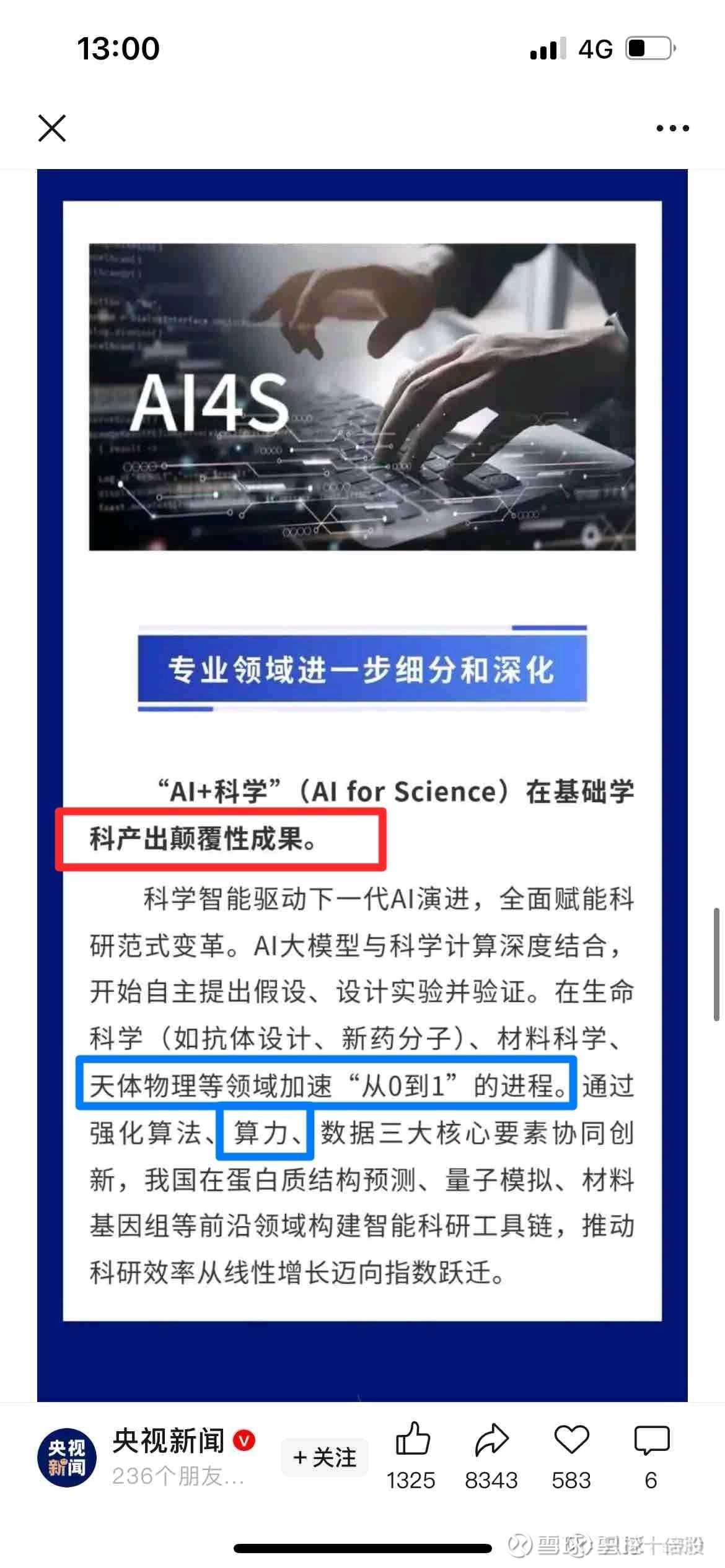 央视说的是做出很多“颠覆性”成果,就是说,这些科学家应该同样无法预测AI4S能做出什么样的新产品,就跟中科院自己一样不能预测他们能做出高温材料。