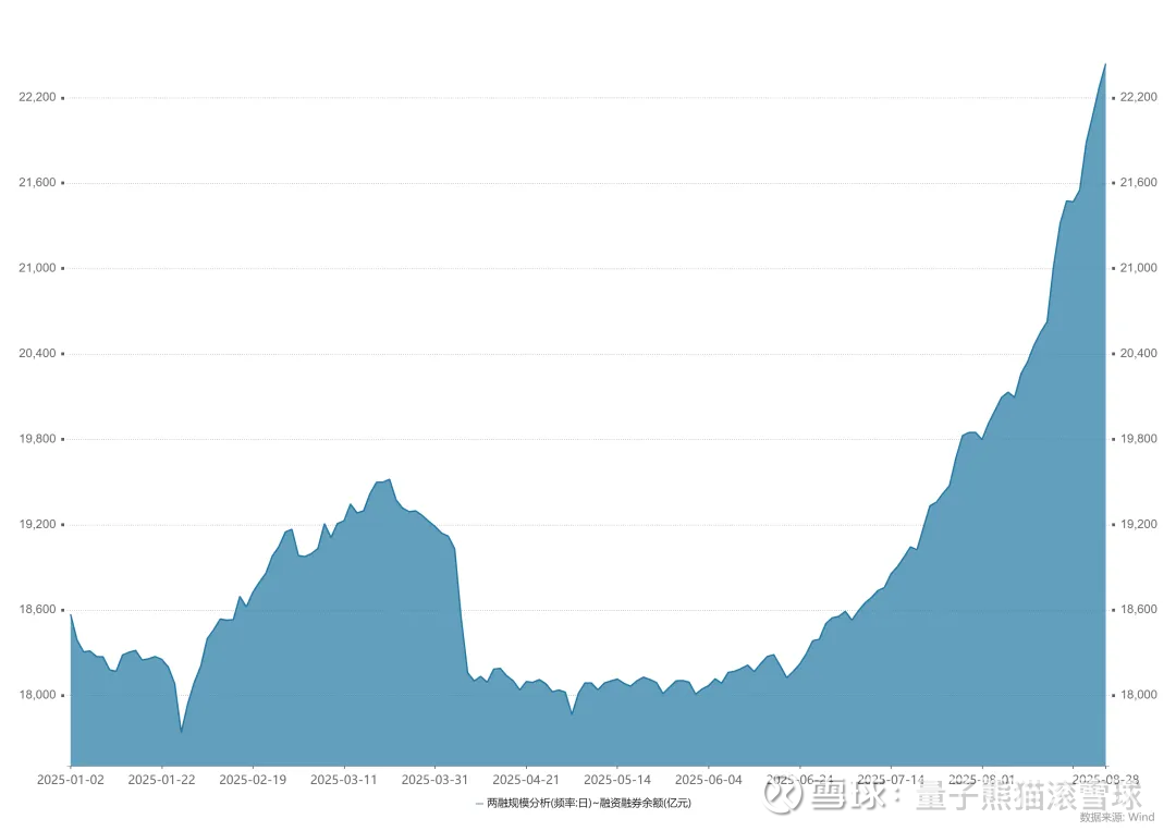 两融余额截止这周四是22439.28亿,对比上周五21550.68亿,环比多了将近千亿,并且就算本周出现了几次回调融资规模也还在每天上涨,下面这张图是从wind拉的今年1月至今的两融余额数据,这个上升趋势确实会让人有点恐高。