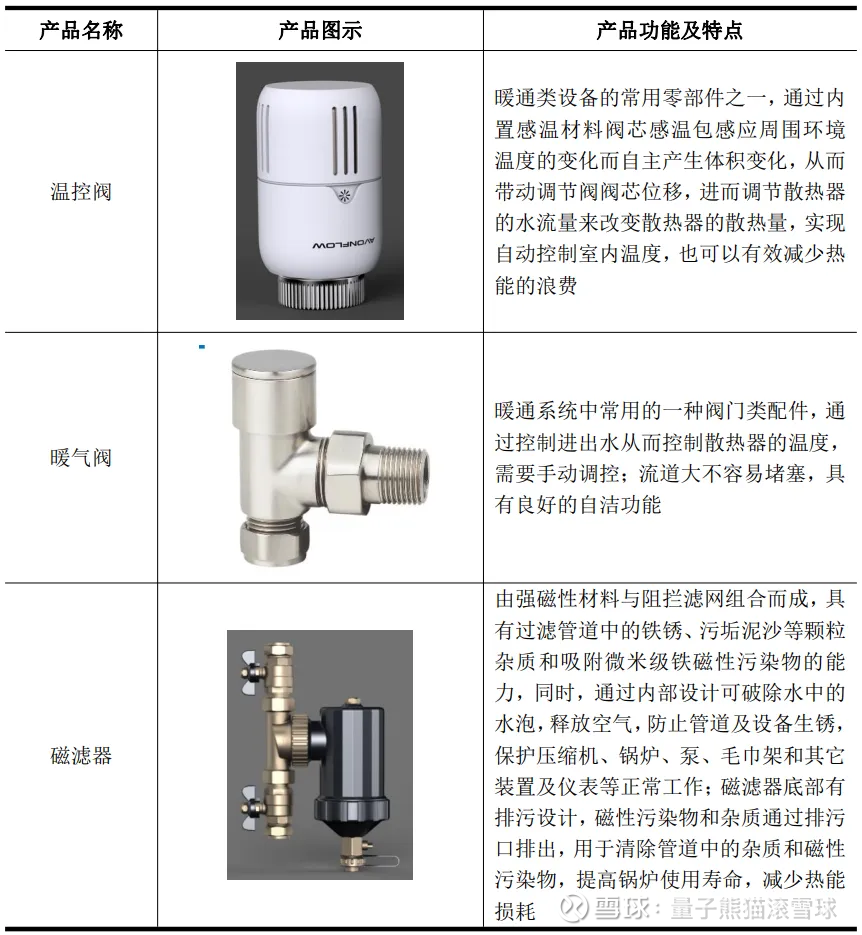 暖通零配件主要包括温控阀、暖通阀门、磁滤器等,是既可以用于公司卫浴毛巾架产品也可以用于其他暖通设备的零配件。