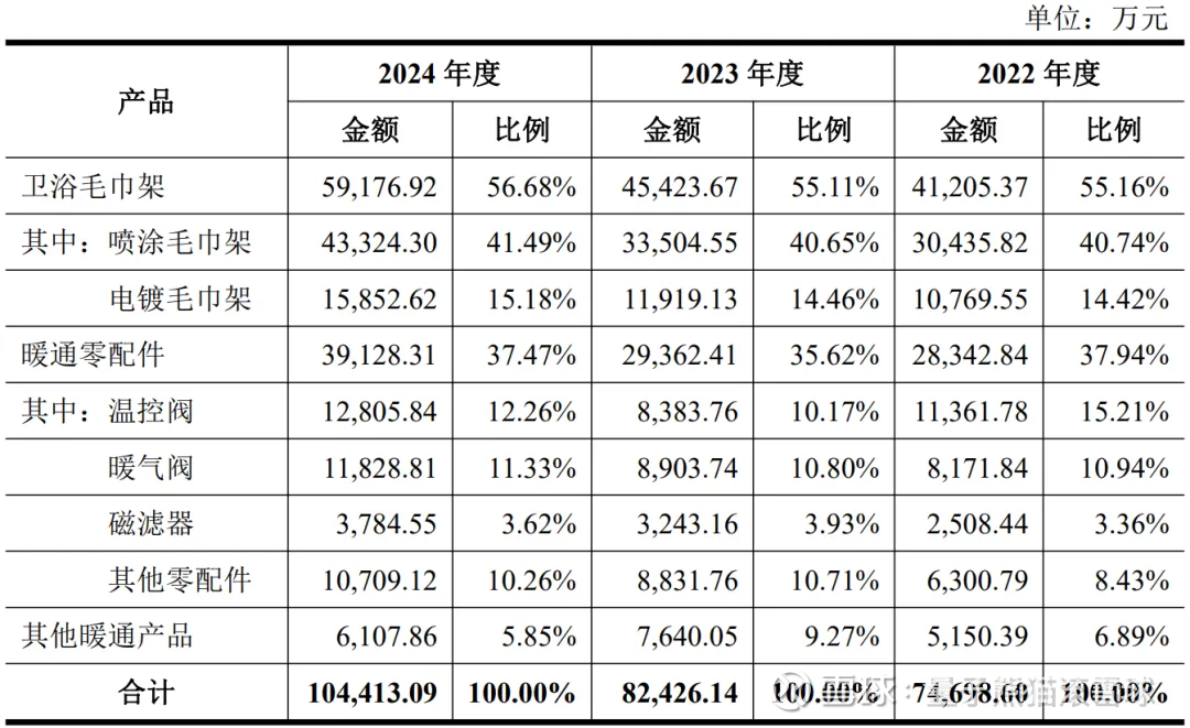 具体营收方面,主要营收来自于卫浴毛巾架,营收占比在55%左右。