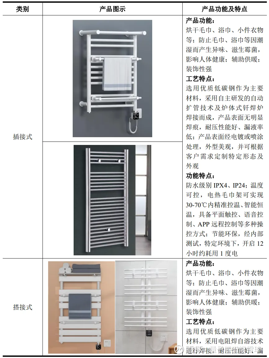 公司产品主要分为卫浴毛巾架和暖通零配件两大系列产品。