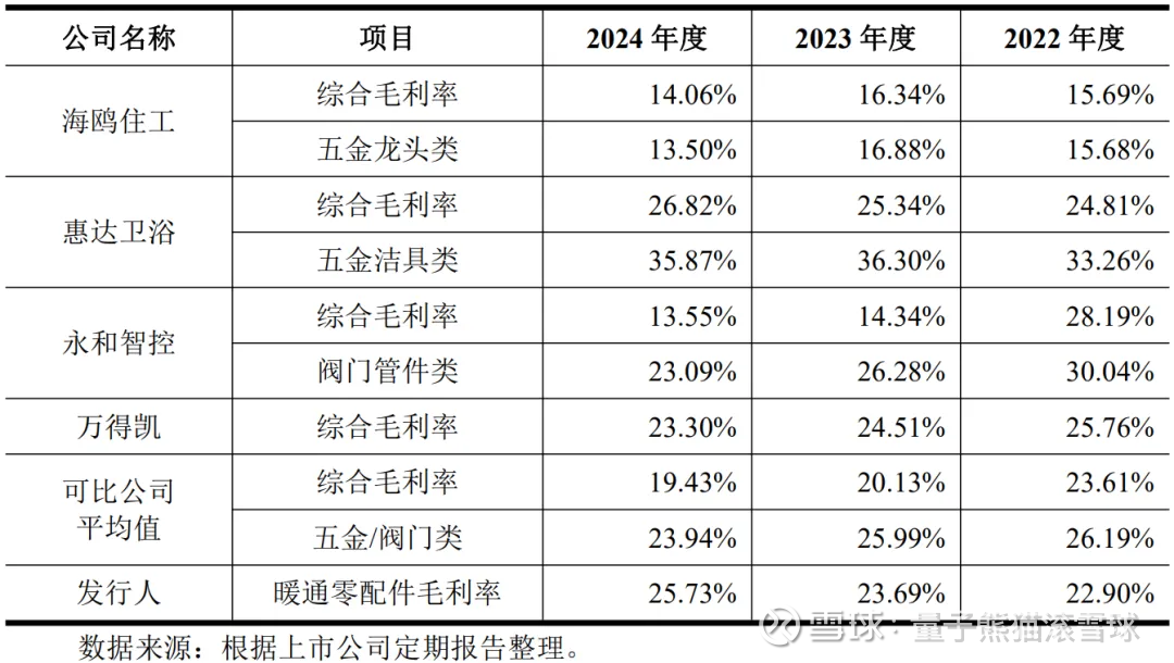 对应行业为金属制品业,可比上市企业分别为海鸥住工(002084)、惠达卫浴(603385)、永和智控(002795)。