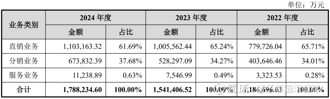 具体营收方面,主要营收来自于直销业务,营收占比在60%左右。
