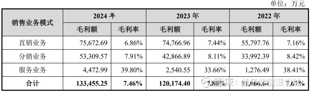 具体毛利率方面,2022年到2024年主营业务毛利率分别为7.67%、7.80%和 7.46%,毛利率还算稳定。