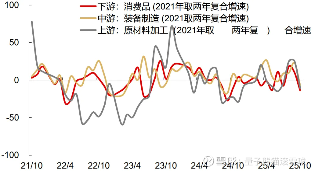 如果把去年高基数考虑进来,以两年平均增速看,10月工业利润累计同比增速两年平均为-1.2%,对比8月和9月的0.7%和-0.2%也都在加速下滑。